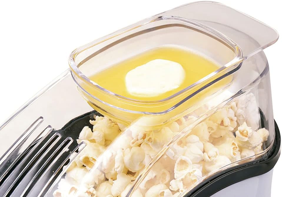 - Design Inteligente: O bocal direcionador evita que a pipoca se espalhe pela cozinha, e a tampa dosadora ajuda a medir a porção exata de milho.
